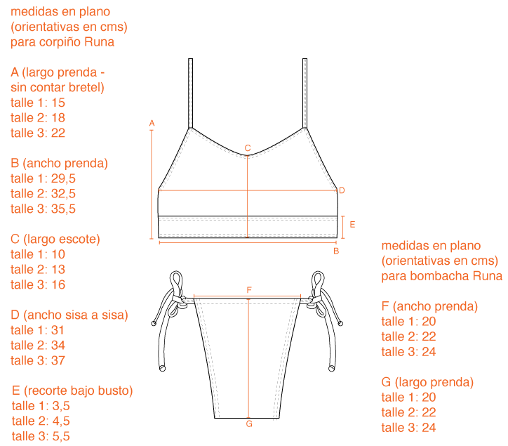 También te dejamos las medidas en plano para que puedas orientarte midiendo un top y bombi similar para comparar :)